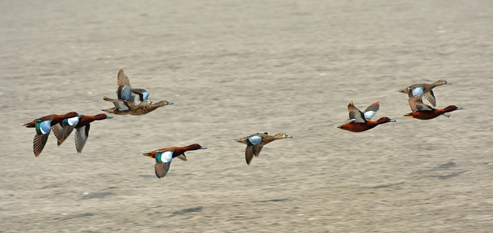 Bandada de patos rojos